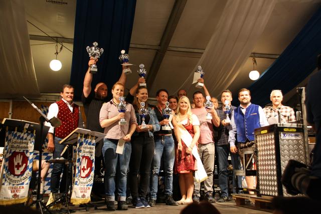 Zur Siegerehrung hatte Moderator Roland Balzer dann noch ein Ass im Ärmel: Er holte Georg Kistler auf die Bühne. Dieser hatte 1957 das erste Steinheben in Pfaffenhofen gewonnen und überreichte heute dem Sieger im Leichtgewicht, Hans Kammerer den Pokal. Auch Zweiter Bürgermeister Albert Gürtner, Volksfestkönigin Natalie Maier und Volksfestreferent Richard Fischer überreichten von Festwirt Lorenz Stiftl gestiftete Pokale und Geldpreise der Stadt Pfaffenhofen. Für alle Teilnehmer gab es selbstverständlich eine Maß Freibier.