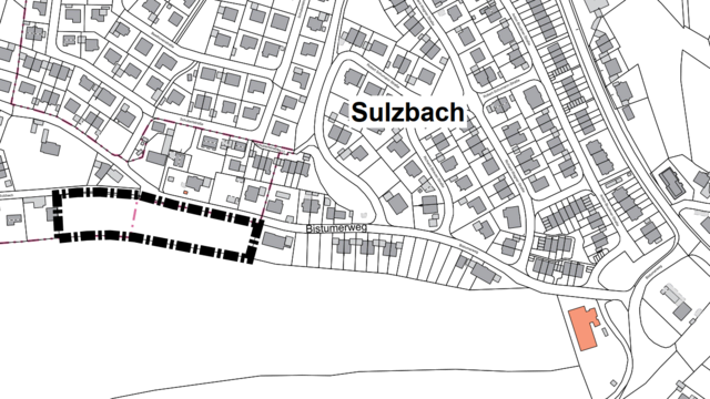 Das Planungsgebiet befindet sich am südlichen Ortsrand von Sulzbach, südlich angrenzend an den Bistumerweg und umfasst vier Grundstücke mit einer Gesamtfläche von ca. 5.200 m². Es ist im nachfolgenden Lageplan, der Bestandteil der Bekanntmachung ist, schwarz gestrichelt umrandet.