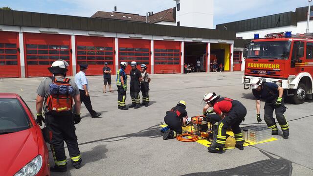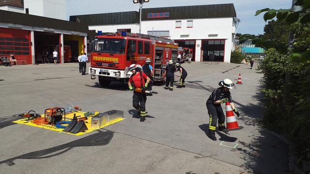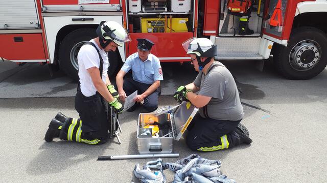 Bei der Gerätekunde musste jeder, den Aufbewahrungsplatz von zwei Geräte im Fahrzeug bei geschlossenen Rollläden bestimmen, zu den Truppaufgaben gehören z.B. die Erklärung des Trennschleifers, die Handhabung der Hebekissen oder die Punkte der Ersten Hilfe.
