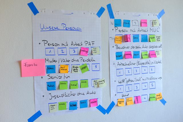 Nach erster Ideenfindung und intensiver Arbeit wurden am Ende der Veranstaltung erste Konzepte für eine bessere Zukunft vorgestellt. Beispielsweise ein Fahrgemeinschafts-Portal für den Arbeitsweg oder ein Schicht-Bus für alle in der Innenstadt arbeitenden Mitbürger wurden ausgearbeitet, auch die Einführung einer App zur Planung von gemeinsamen Fahrten zu Sportaktivitäten oder Schulen der Kinder wurde besprochen. Die zum Abschluss gestalteten Prototypen können im neu aufgestellten „Mobilitätscontainer“ auf dem Kreisel der Ludwig-Hirschberger-Allee im EcoQuartier begutachtet werden.