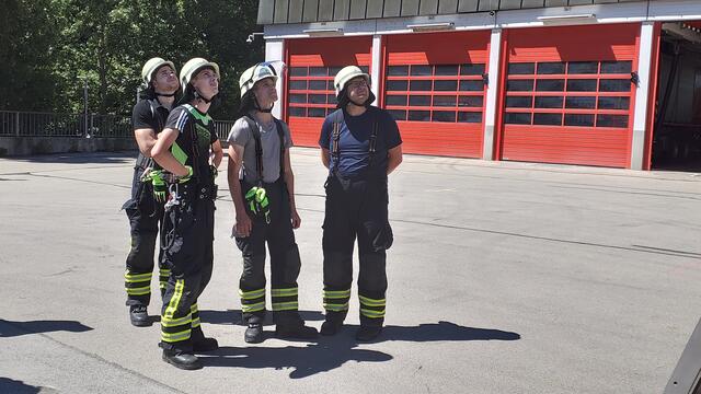 Den sicheren Umgang mit dem Gerätesatz erklärten die Ausbilder Christian Schröder, Florian Wutz und Andreas Staudacher einer Kameradin und sechs Kameraden im diesjährigen Lehrgang Absturzsicherung. Der dreitägige Lehrgang beinhaltet neben theoretischen Grundlagen auch viele praktische Einheiten, wie beispielsweise Knoten und Stiche und Sicherungstechniken.