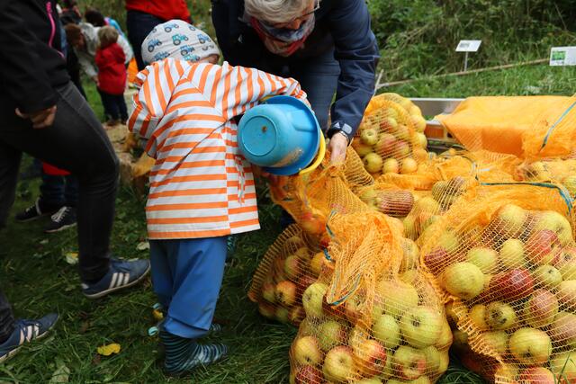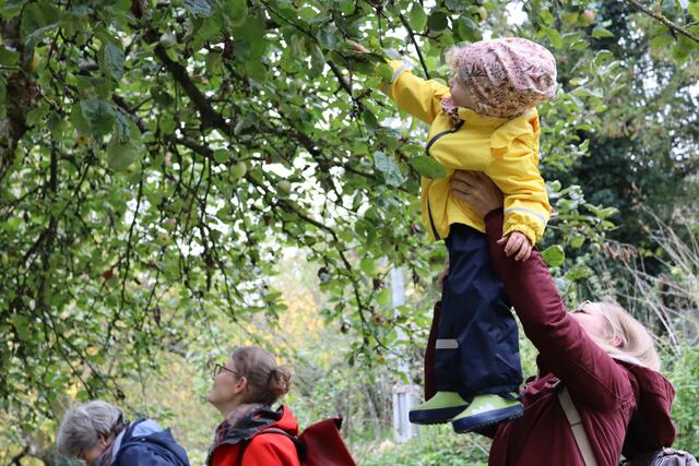 „Die Kinder lernen durch diese Aktion, dass ein Apfelsaft nicht aus dem Supermarkt kommt und dass in einem Tropfen einiges an Arbeit steckt. Und ganz besonders lernen sie, dass wir auf unsere Umwelt aufpassen müssen, damit überhaupt Äpfel wachsen können”, erläutert Clarita Dietrich, Mitarbeiterin beim Team Stadtgrün. Auch Mario Dietrich betont die Wichtigkeit der Sammelaktion, bei der den Kleinsten das Ökosystem Streuobstwiese nähergebracht werden soll. Mithilfe eines Bilderrätsels durften die Mädchen und Buben den Weg von der Blüte bis zum Apfel nachvollziehen. „Es ist schön, wenn Kinder Freude an der Arbeit im Grünen haben. Vielleicht findet so das ein oder andere Kind zum Traumberuf des Gärtners”, hofft Mario Dietrich.