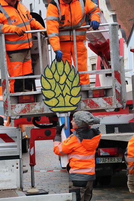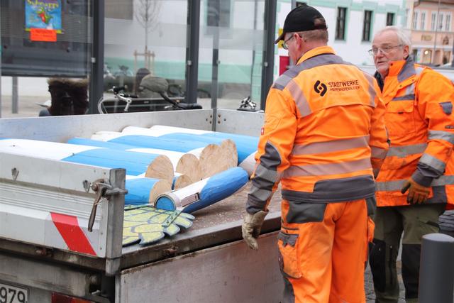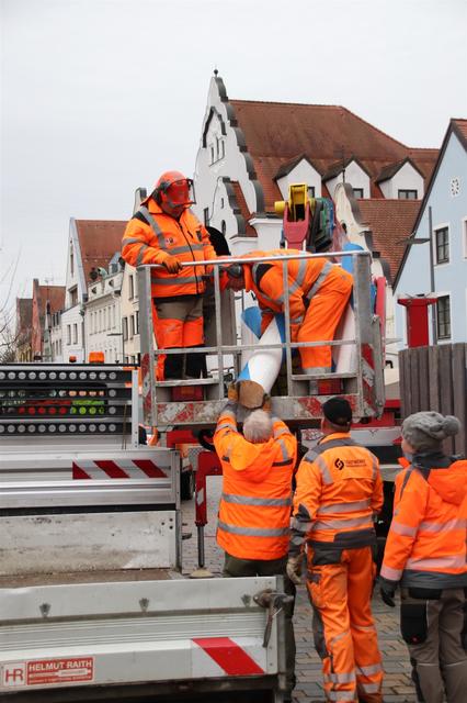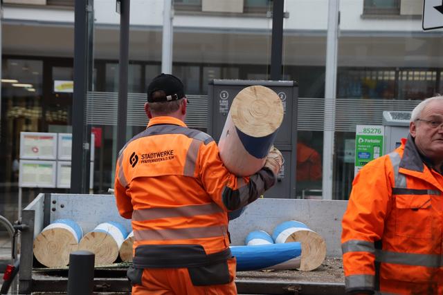 Bei dieser Gelegenheit haben die Stadtwerkemitarbeiter auch den Christbaum vor dem Haus der Begegnung zerlegt und entfernt.