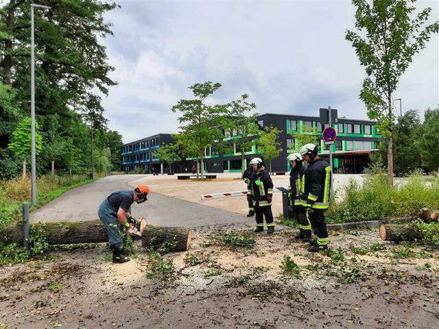 Im weiteren Verlauf der Nacht mussten an vielen verschiedenen Stellen im Stadtgebiet Sturmschäden beseitigt werden. Vielfach waren Bäume umgestürzt, Bauzäune umgefallen oder Verkehrswege durch andere Gegenstände versperrt. In einigen Fällen mussten Äste auch mit der Drehleiter entfernt werden. Unterstützung erhielten wir hierbei auch von den Ortsteilfeuerwehren und den Stadtwerken Pfaffenhofen.