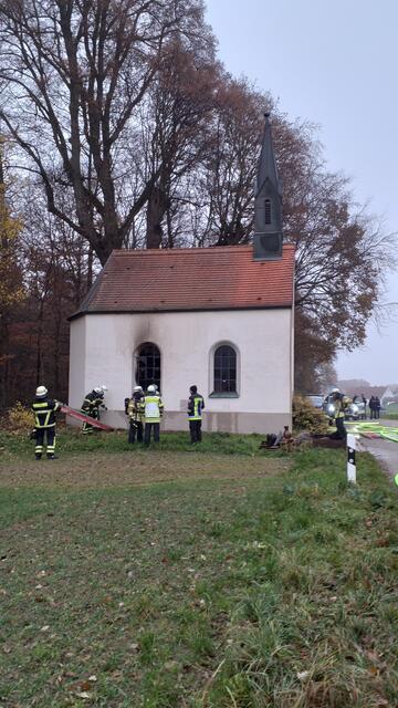 Während des Rückbaus wurde ein Teil der Pfaffenhofener Kräfte (59/1 und 40/1) zu einem weiteren Einsatz in der nahegelegenen Kapelle gerufen, die ebenfalls in Flammen stand.