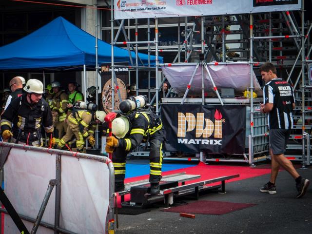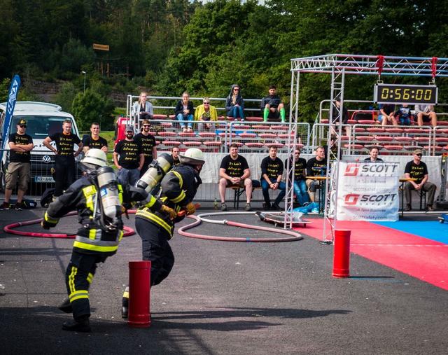 Zurecht, wird der Wettkampf auch gerne als „five stages of pain“, zu Deutsch „Die fünf Stufen des Schmerzes“ beschrieben. Gilt es doch, mit komplettem Feuerschutzanzug, mit Atemschutzgerät, Atemschutzmaske und in Feuerwehrstiefeln, fünf Aufgaben am Stück zu bewältigen. Zunächst muss ein 19kg schwerer Schlauch eine Treppe auf 12m Höhe getragen werden. Im Anschluss gilt es einen weiteren Schlauch an einem Seil in den dritten Stock hochzuziehen. Danach geht es die Treppe wieder hinunter, wo schon die sogenannte „Keiser Force Machine“ wartet. Mit Schlägen von einem vier Kilogramm schweren Vorschlaghammer muss ein 72,5kg Gewicht um 1,50m bewegt werden. Es folgt ein 40m langer Slalomlauf, an dessen Ende ein weiterer Schlauch parat liegt. Dieser ist löschfertig mit Wasser gefüllt und muss auf 20m ausgezogen werden, um dort ein Ziel um zu spritzen. Als letztes muss ein 80kg schwerer, lebensechter Dummy im „Rauteck-Rettungsgriff“ in das 30m entfernte Ziel gerettet werden.
