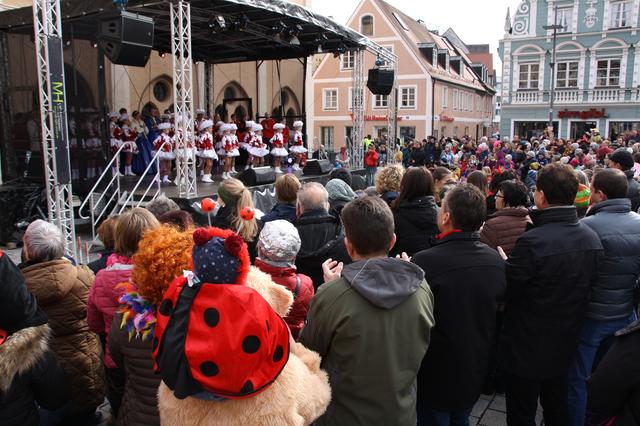Auf den beiden Bühnen vor dem Rathaus und in der Nähe des Schlagerzeltes boten am Faschingsdienstag ab Mittag mehrere Faschingsgesellschaften und Tanzgruppen ein abwechslungsreiches Programm, anschließend sorgte DJ „Pudding“ für Stimmung. Die Verpflegung der Besucher übernahmen verschiedene Vereine und Gastronomen an zahlreichen Buden und Ständen.