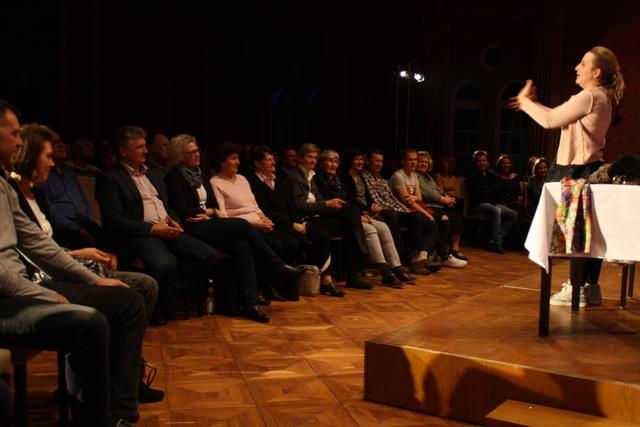 Auch als „Stanzel“ selbst versprühte sie ihre Energie bis in die hinterste Ecke des ausverkauften Rathaus-Festsaals und machte Zuschauer zu Figuren ihrer Inszenierung. Dies sorgte für großes Gelächter, sicherlich auch vor Erleichterung, dass es einen selbst nicht getroffen hatte.
