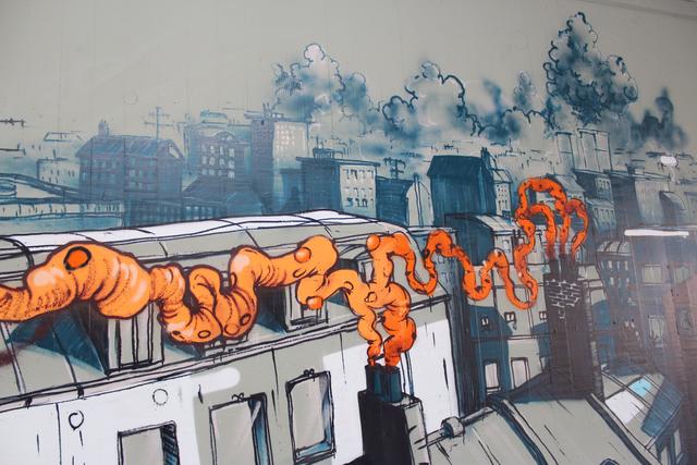 - Das Fischmotiv von Iron Monkey lässt die Unterführung nun leuchten.