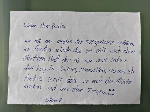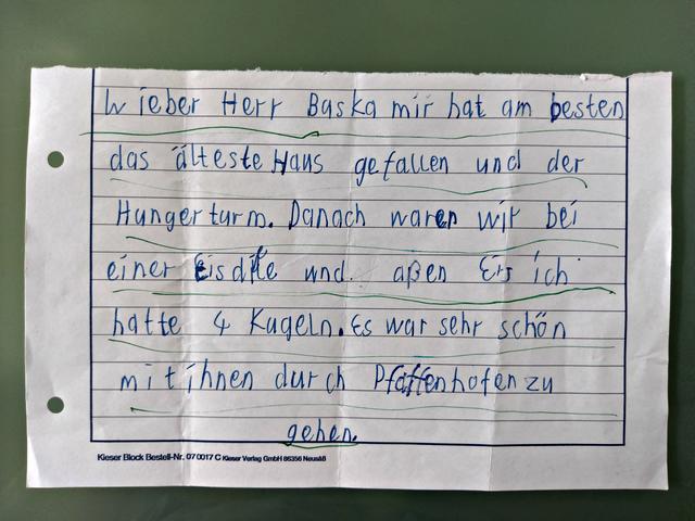 Das ehrliche Feedback unserer zufriedenen Kunden: Die Klasse 4a der Grundschule Niederscheyern nach einem Ausflug in die Stadtgeschichte Pfaffenhofens - und Eis gab es auch noch!