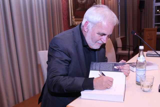 Der Moderator übernahm auch die Rolle des Laudators und da sprach Florian Erdle ein dreifaches Lob aus: der Stadt Pfaffenhofen, deren offensive Auseinandersetzung mit ihrer „braun-dunklen Vergangenheit“ keineswegs eine Selbstverständlichkeit ist; dem Autor, der sich auch durch Widrigkeiten und Anfeindungen nicht von seinen Nachforschungen abbringen ließ; und nicht zuletzt dem Publikum und den Lesern, die sich auch bei der dritten Auflage wiederum sehr interessiert zeigen.