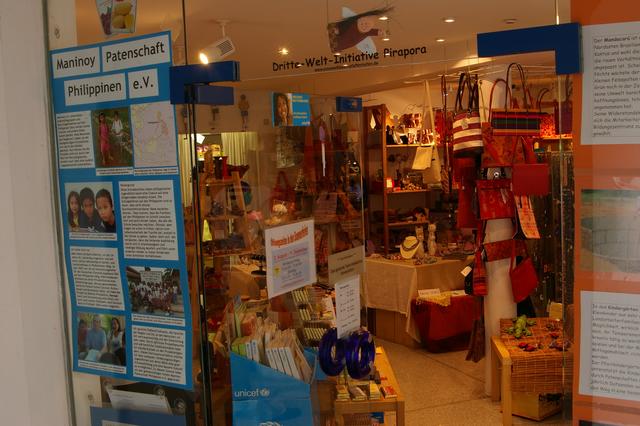 In den 80er Jahren boten zunächst Mitglieder der Pfaffenhofener Kabarettgruppe "Stachelbär" auf dem Wochenmarkt Kaffee aus fairem Handel an. Im Jahr 1993 wurde der Verein "Dritte Welt Initiative Pirapora e.V." gegründet. Bei Wind und Wetter standen nun ehrenamtliche Mitglieder des Vereins auf dem Wochenmarkt im Dienste des fairen Handels. Zur Zeit betreuen ca. 15 Frauen und Männer den Marktstand. Im Oktober 2003 eröffnete der Eine Welt Laden in der Auenstraße. Hier engagieren sich ca. 30 ehrenamtliche arbeitende Frauen und Männer. In heller und freundlicher Atmosphäre bietet der Laden ein großes Warensortiment aus den Bereichen Lebensmittel, Kunst und Handwerk – darunter Geschenkartikel, Schmuck, Leder- und Papierwaren, Körbe und vieles mehr aus fairem Handel an. Träger des Ladens ist der Verein "Eine Welt Laden Pirapora e.V." In diesem Jahr konnte der Laden sein 10-jähriges Jubiläum feiern. Schauen Sie einfach mal herein. Ein Besuch lohnt sich.