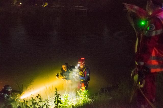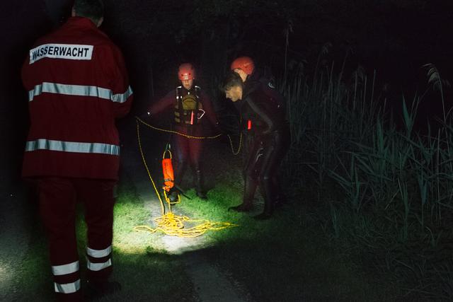 In der Nacht begann schließlich die große Suche nach den vermeintlich vermissten Jugendlichen. Ein Trupp Wasserretter suchte die Ilm und ihre Ufer ab. Denn immer wieder stürzen Personen und bleiben an der Böschung liegen. Zeitgleich machten sich die drei Rettungstaucher für ihren Einsatz in den Weihern bereit: „Für uns ist die vertrauensvolle Zusammenarbeit mit den Leinenführern wichtig. Sie geben uns Anweisungen und halten den Kontakt zum Leiter der Schnelleinsatzgruppe, während wir im dunklen Wasser tauchen und alles absuchen.“