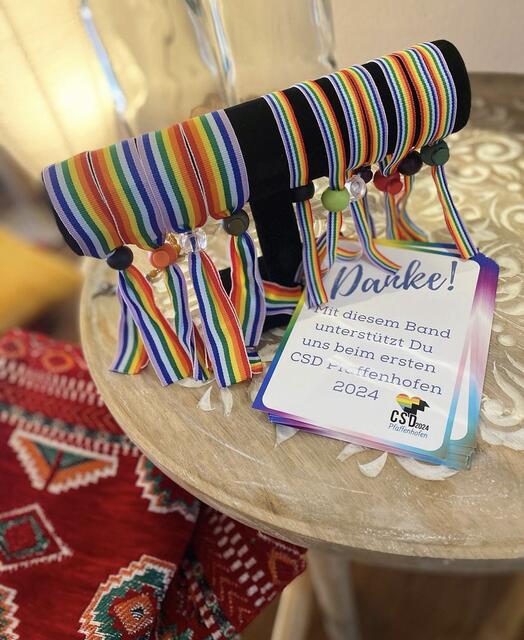 Mit jedem verkauften Regenbogenband unterstützt Du Queer Pfaffenhofen e.V. beim ersten CSD Pfaffenhofen 2024.