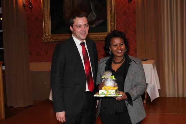 Almaz Böhm, die Ehefrau von Karlheinz Böhm und seine Nachfolgerin an der Spitze der Stiftung „Menschen für Menschen“, sprach zum Thema „Jeder kann helfen – die Bedeutung von sozialem Engagement“. Sie ging auf die beiden Städtewetten ein, die Pfaffenhofen mit „Menschen für Menschen“ verbinden und bei denen die Pfaffenhofener in den Jahren 2006 und 2011 Spenden für die Äthiopienhilfe gesammelt haben. Die Pfaffenhofener, so erklärte Almaz Böhm, hätten so „als engagierte Weltbürger über den eigenen Tellerrand hinaus geblickt“. Und sie betonte: „Sie alle haben damit auf vorbildliche Weise demonstriert, dass in Pfaffenhofen der Grundsatz ‚Wer Glück hat, kann es großzügig weitergeben‘ nicht nur für die eigene Stadt und die eigene Bevölkerung gilt, sondern auch im internationalen humanitären Zusammenhang.