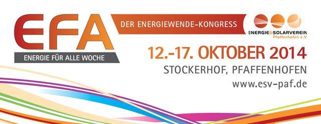 Bereits zum fünften Mal organisiert der Energie- und Solarverein Pfaffenhofen e.V. die "EFA - Energie für alle Woche“, einen Kongress rund um die Themen Umwelt und Energie, mit vielen interessanten Vorträgen, Diskussionen und Exkursionen für Bürger, Unternehmen und Kommunen.