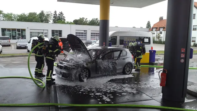 Donnerstag, 28. August 2025, 18:32 Uhr Münchener Straße, Pfaffenhofen Großalarm für die Pfaffenhofener Feuerwehr am Donnerstagabend: Mit dem Alarmstichwort "Brand Tankstelle" wurde eine Vielzahl an Einsatzkräften zur Tankstelle gegenüber vom Bahnhof alarmiert. Ein PKW hatte unmittelbar auf dem Tankstellengelände, direkt zwischen den Zapfsäulen, zu qualmen und schließlich zu brennen begonnen. Noch auf der Anfahrt der Feuerwehrkräfte meldete die Leitstelle per Funk, dass das Auto bereits in...