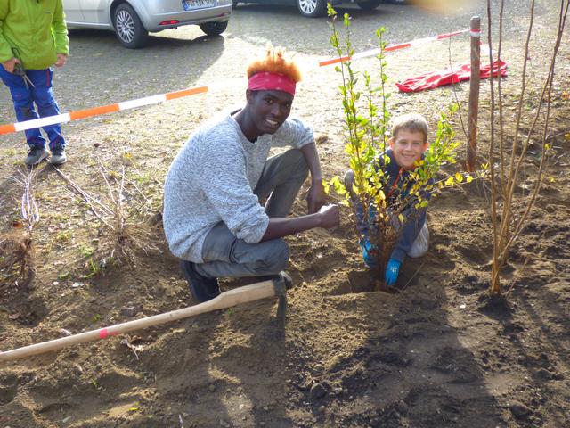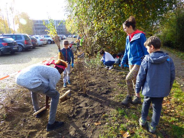 Gemeinschaftliches Hecken-Pflanzprojekt auf dem HiPP-Gelände zwischen Parkplatzfläche und Ilmweg verwirklicht