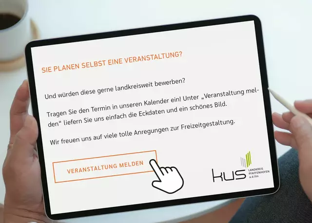 Egal ob Kinderworkshop, Museumsführungen, sportliche Darbietungen, traditionelle Volks- und Bürgerfeste oder vielseitige Kulturangebote: das detaillierte und tagesaktuelle Jahresprogramm für den Landkreis Pfaffenhofen ist im Online-Veranstaltungskalender des Kommunalunternehmens Strukturentwicklung Landkreis Pfaffenhofen a.d.Ilm (KUS) zu finden. Vereine, Kommunen und Institutionen können unter www.erlebnisregion-pfaffenhofen.de/veranstaltungen unkompliziert eigene, für die Öffentlichkeit...