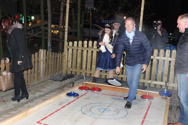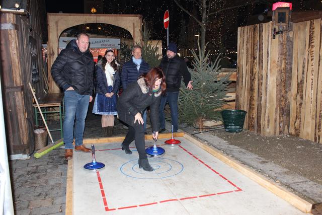 Der Zweite Bürgermeister Albert Gürtner eröffnete zusammen mit Organisator Philipp Schleef, Volksfestkönigin Natalie Maier und Stadtrat Richard Fischer den Christkindlmarkt. (von links)