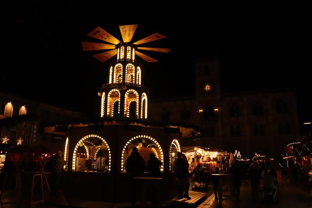 Die Glühwein-Pyramide ist ein schöner Blickfang auf dem diesjährigen Christkindlmarkt.